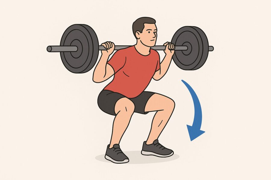 1. バーベルスクワット — 8〜10回 × 3セット(休憩:90秒)